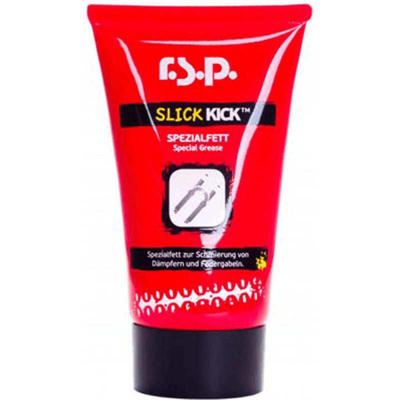 Slick Kick es una grasa especial sin litio para lubricar amortiguadores y horquillas. Slick Kick aporta velocidad y facilidad de movimiento a sus horquillas y amortiguadores en senderos que exigen un alto rendimiento